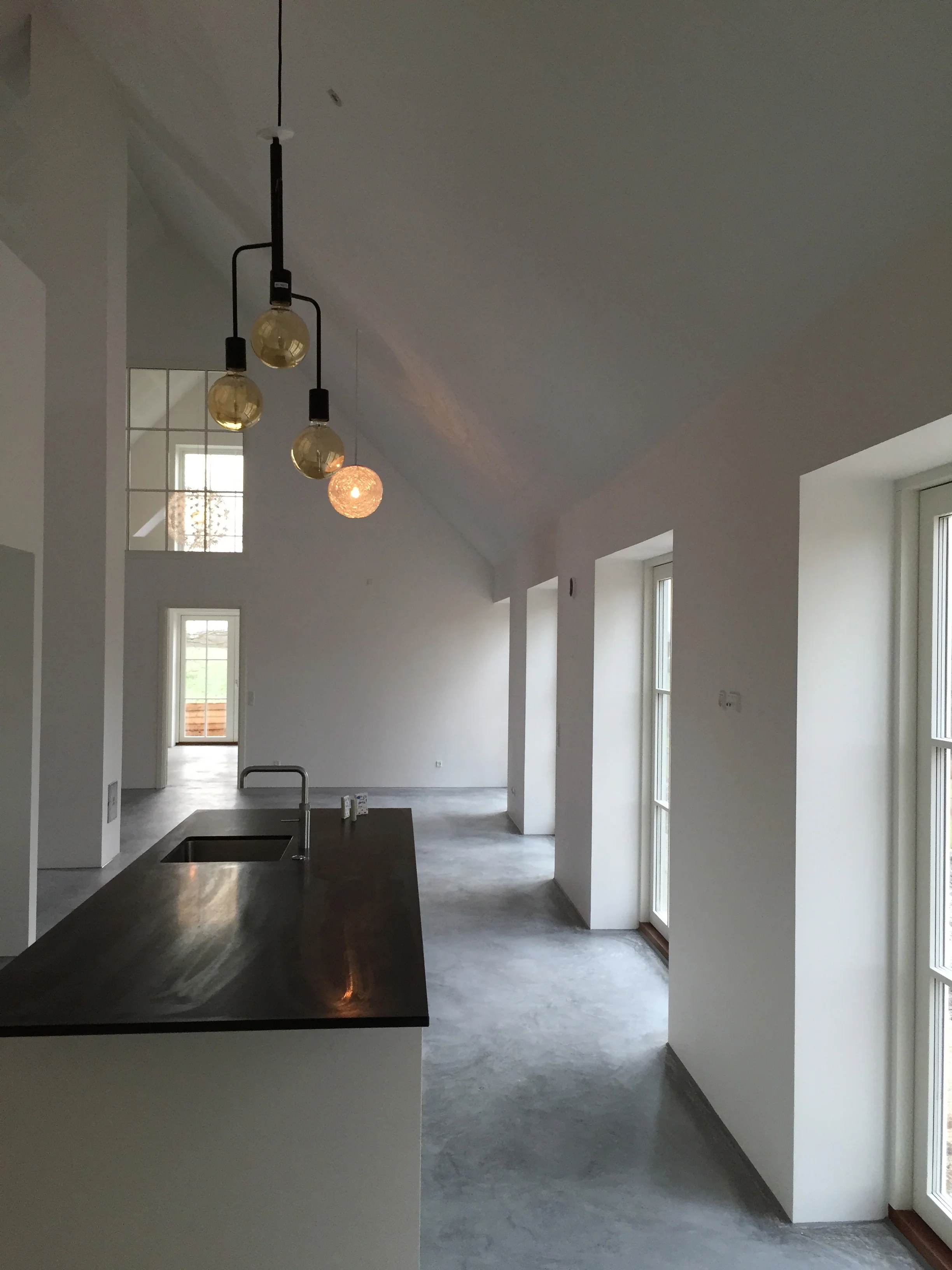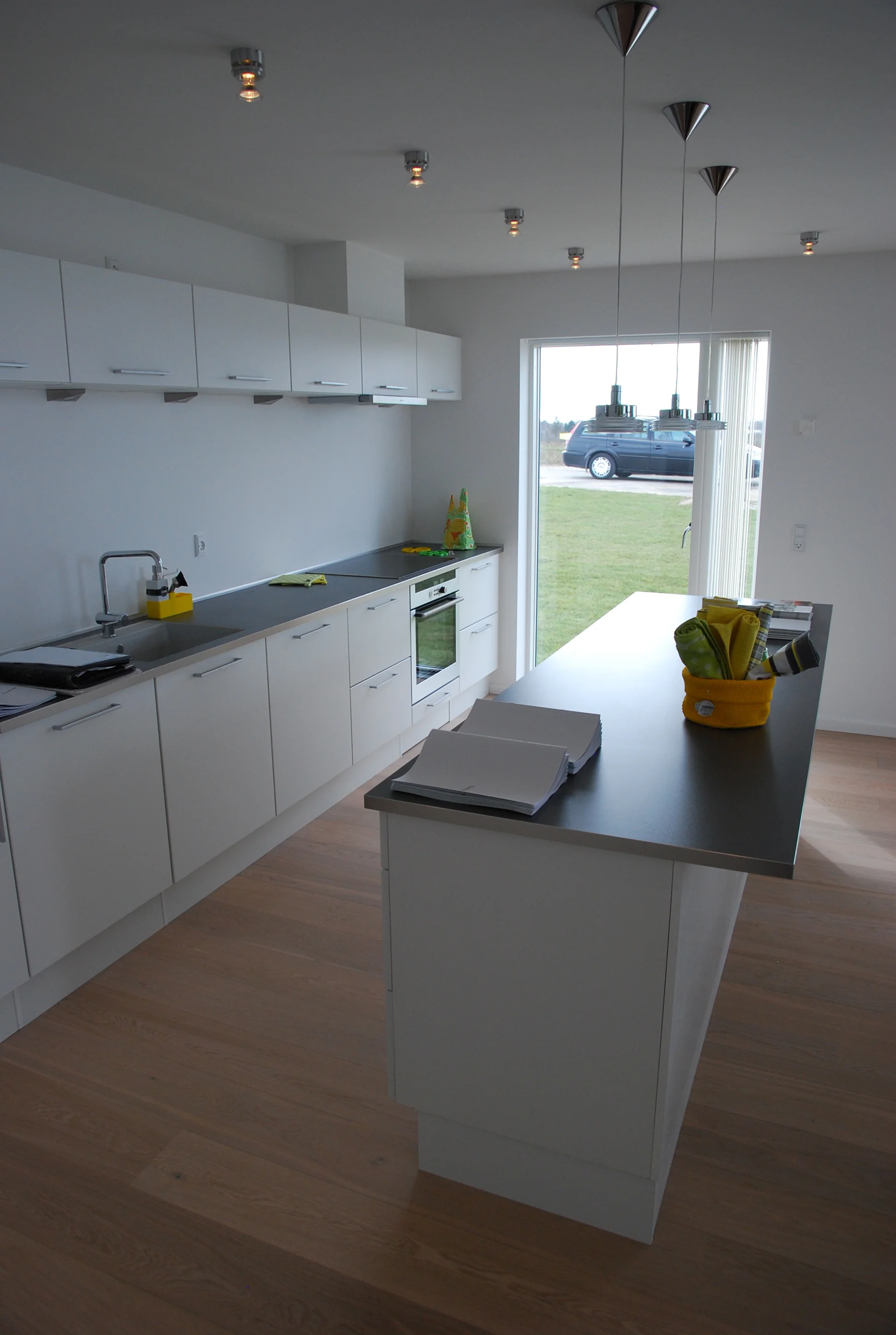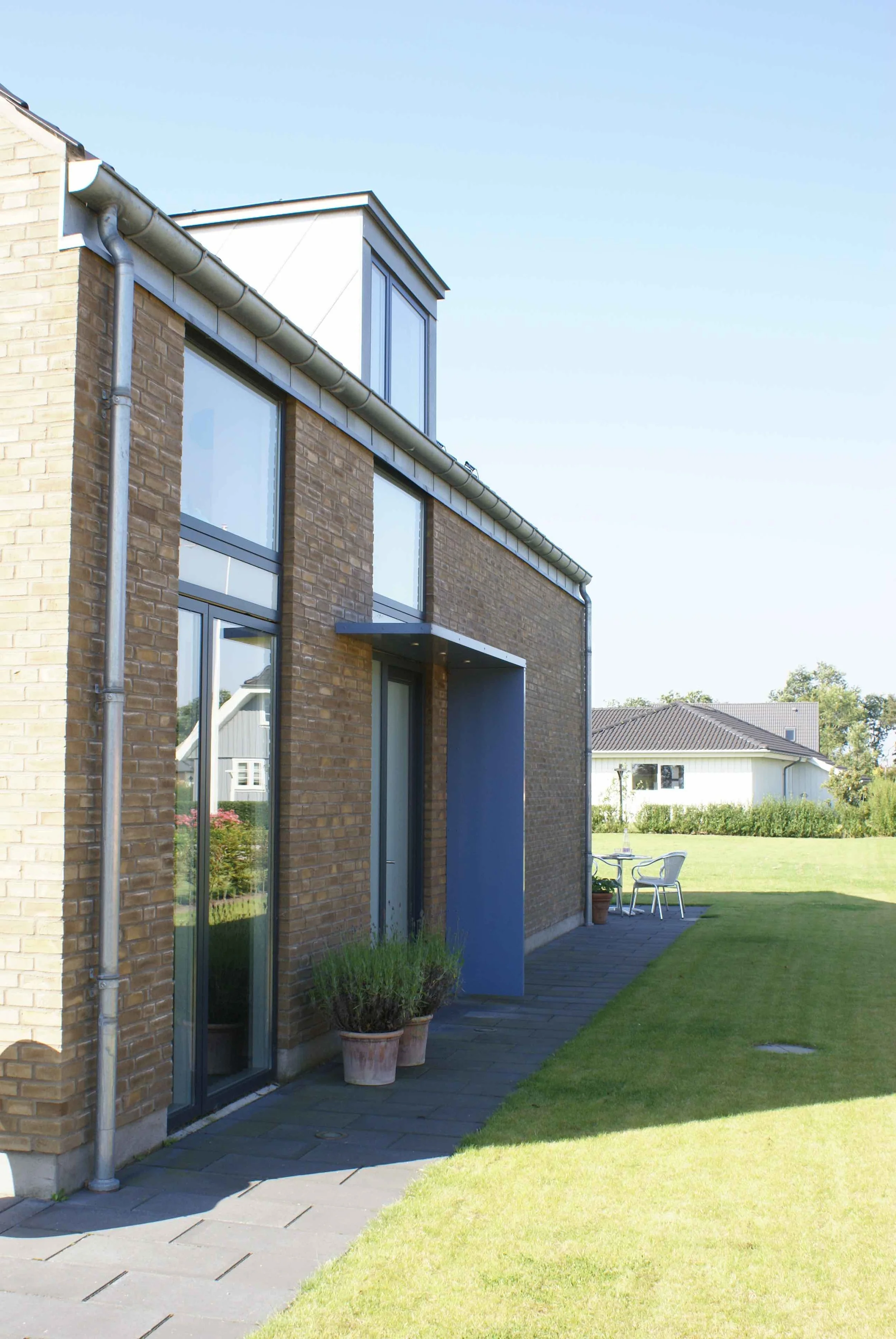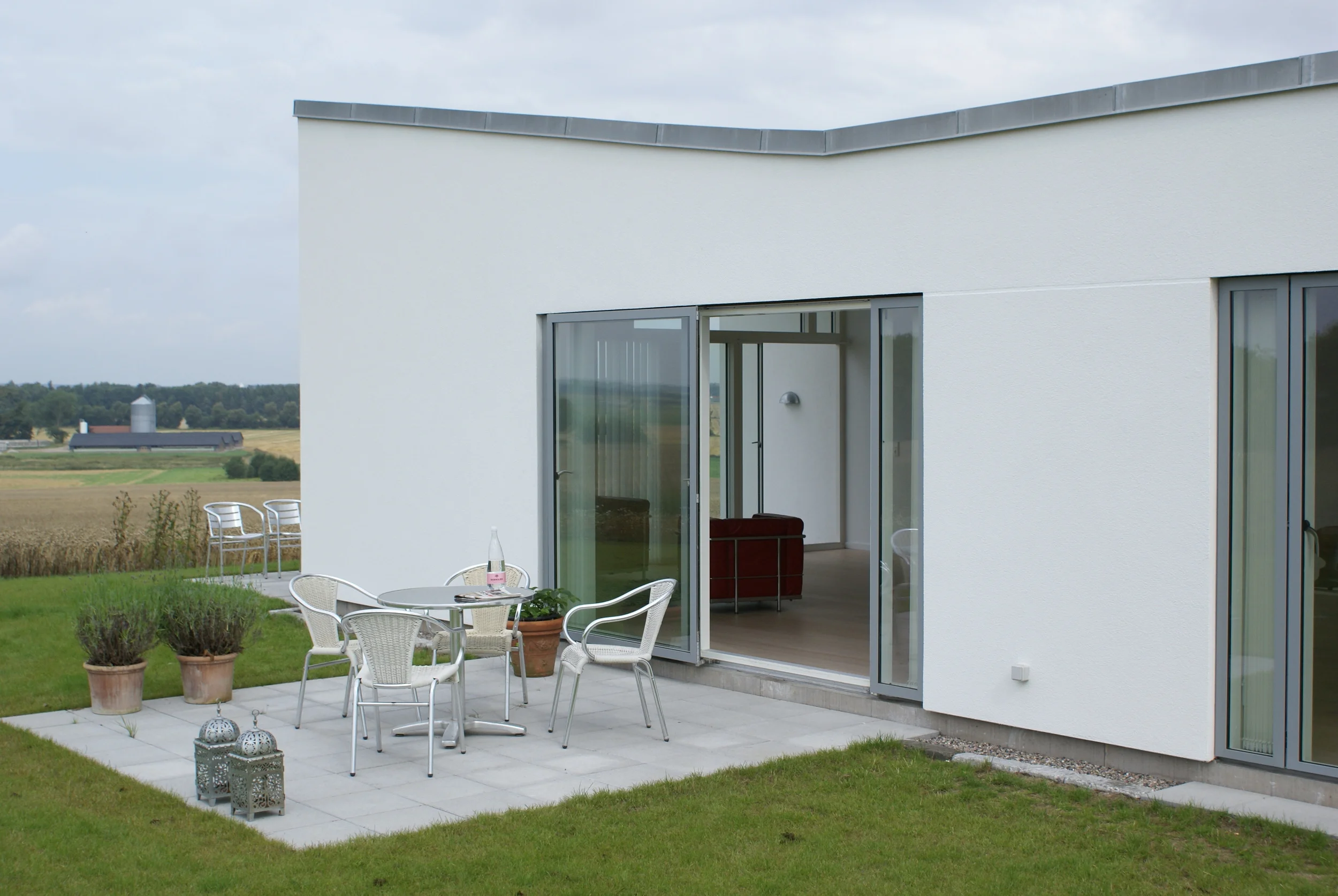 Vi nyder huset, som på alle måder lever op til vores forventninger. De mange vinduer giver masser af lys (og varme) og de mange døre til terrasserne står åbne fra tidligt forår til efterårets komme. Arkitekturen bag huset sikrer at alt blive inddraget, der er ikke en krog indendørs eller udendørs der ikke bliver brugt.