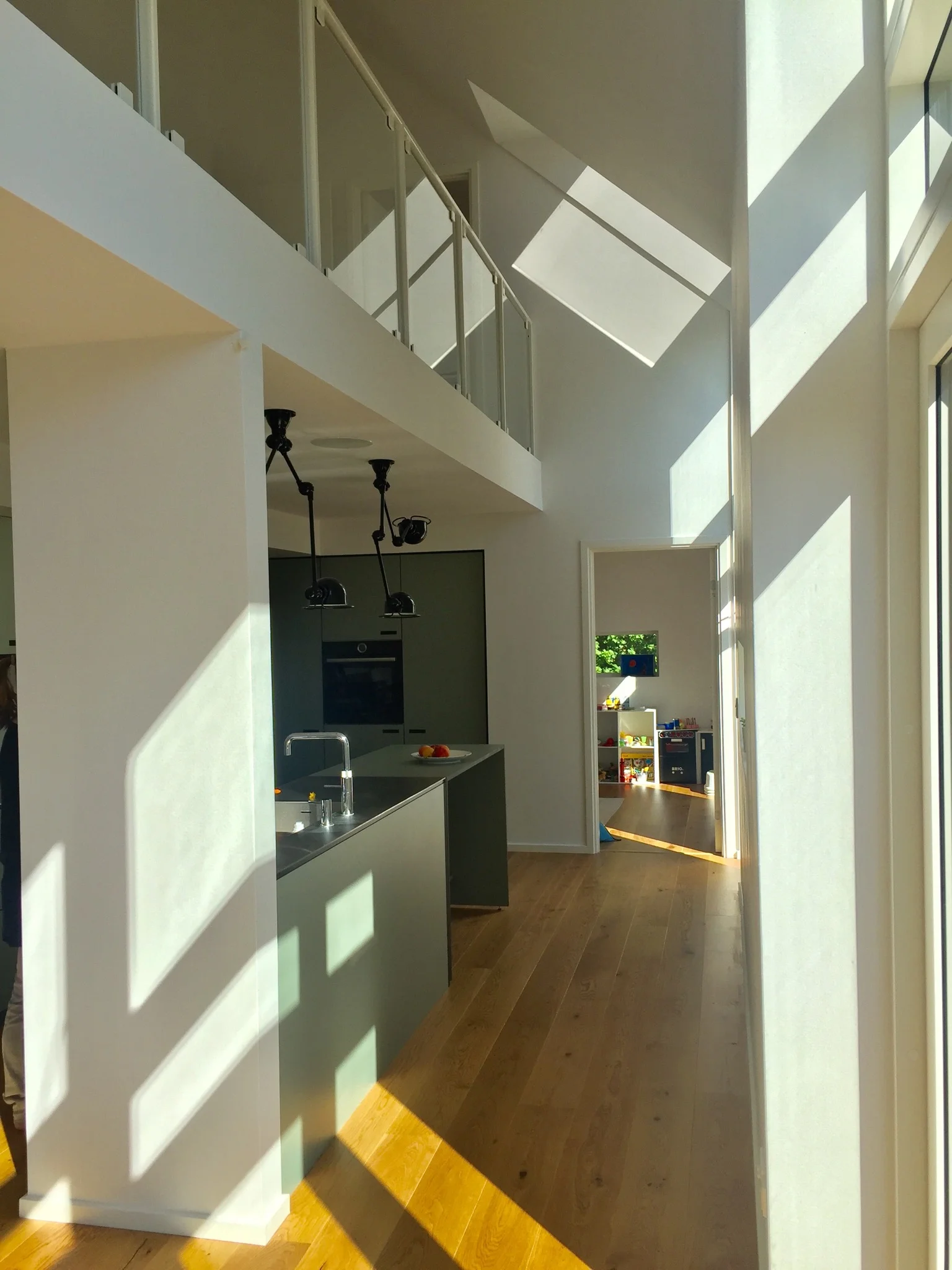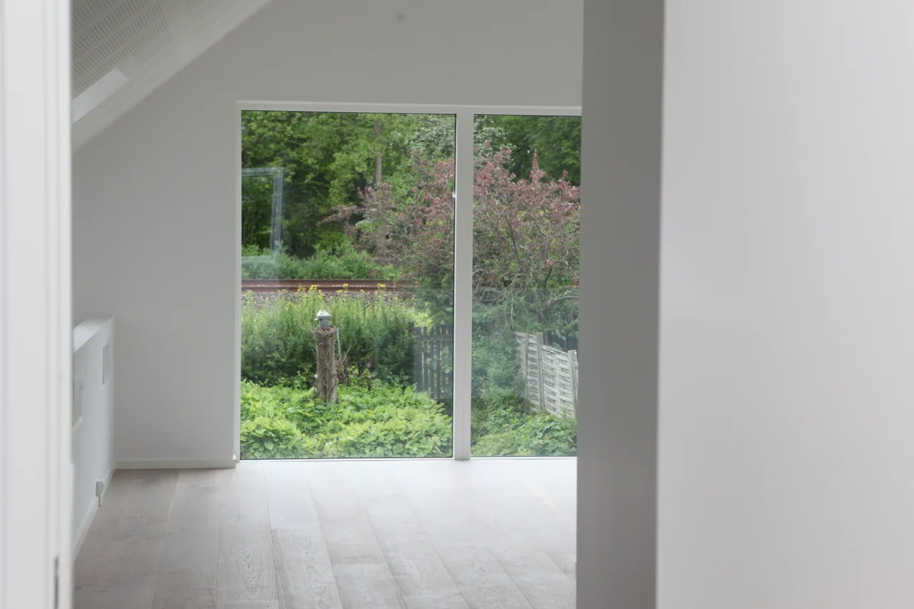 Huset er meget åbent, med gode kik mellem etagerne og en prioritet af lys, luft og højt til loftet