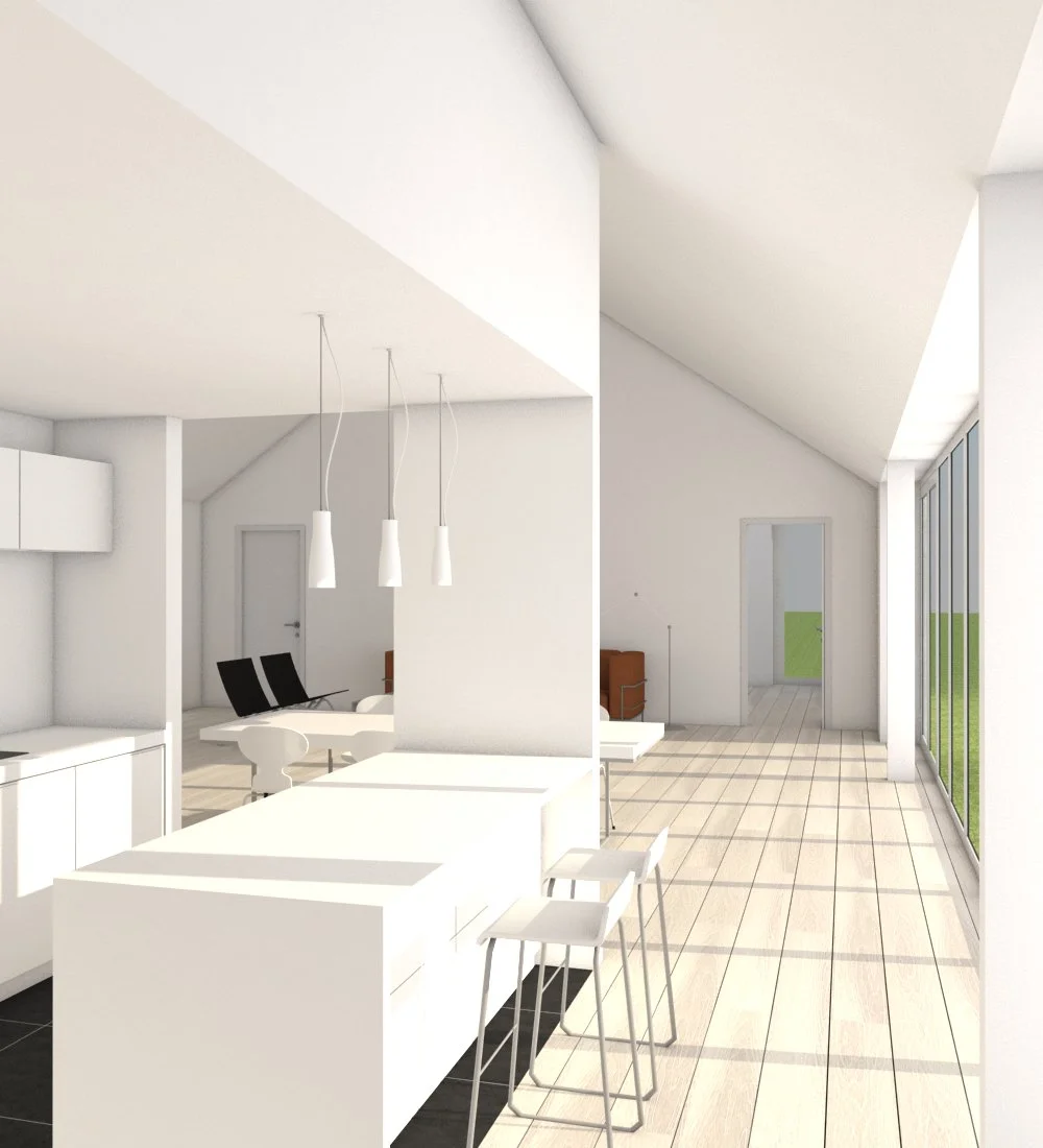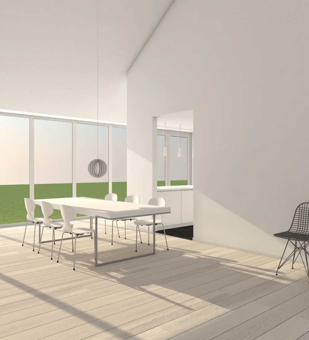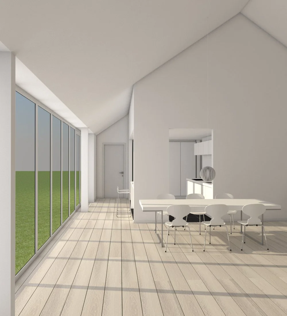 Huset I Kollerød, er opført i smukke landlige omgivelser. Med skov, gadekær og uendelige vider i baghaven. Vi har derfor, sammen med bygherren valgt at gå efter et mere klassisk udtryk, med blandt andet, sprossede hvide vinduer og hvidpudset tegl facade.